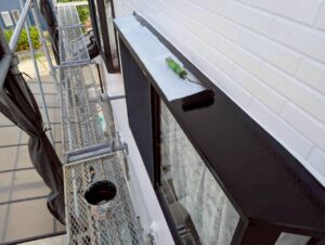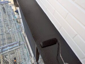 小郡市の現場で、竪樋(たてどい)と鉄部の仕上げ塗装が完了しました!