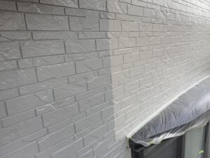 今回は、筑紫野市で行った外壁上塗り作業の途中段階と、上塗り完了後の仕上がり をご紹介します!