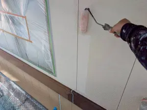 職人がローラーを使い、